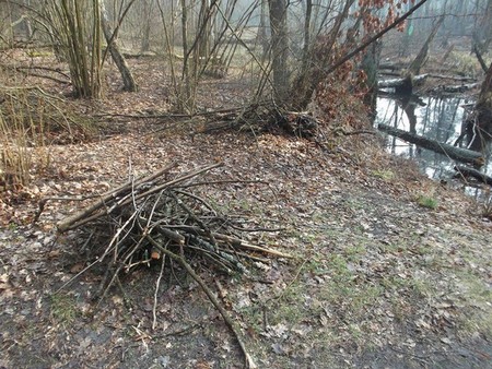 Na zdjęciu kopiec gałęzi koło Wilczej Strugi i Mogilnego Mostka 27 marca 2016 roku.